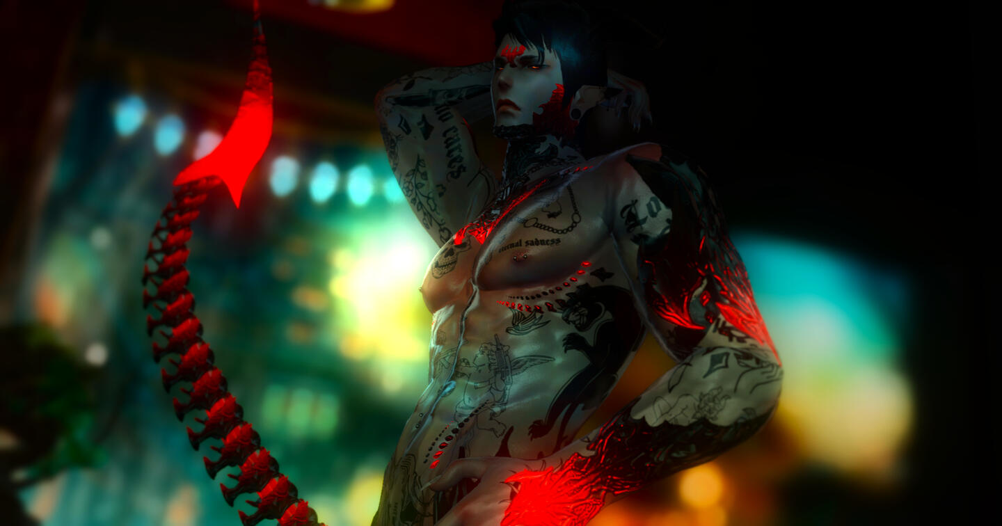 For every high, there's a low.Bairon knows this better than most. His life is the edge, the lines he leans on thinner than the ones left cut down mirrored surfaces. He knows that long nights make for short lives. And while hard liquor in your wake-up cup may mean hard living, he'll never tire of the taste. Most of all though, Bairon knows that Kugane after dark is more treacherous than the cheery, cherry-colored paper lanterns strung across its streets would have you believe.Something dark and restless simmers in the temperamental xaela's eyes. Between the shine of his black scales and the smoke stuck in his mouth, it's easy to picture him breathing fire. He deals in highs, and even the moths crowded around his flame know to keep it on the low.Break that trust, and Bairon will show you how perilous the streets of Kugane can be...